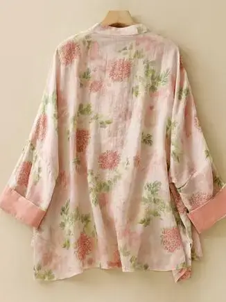 Printed Shirt Retro National Style Button-Up Artistic Shirt
